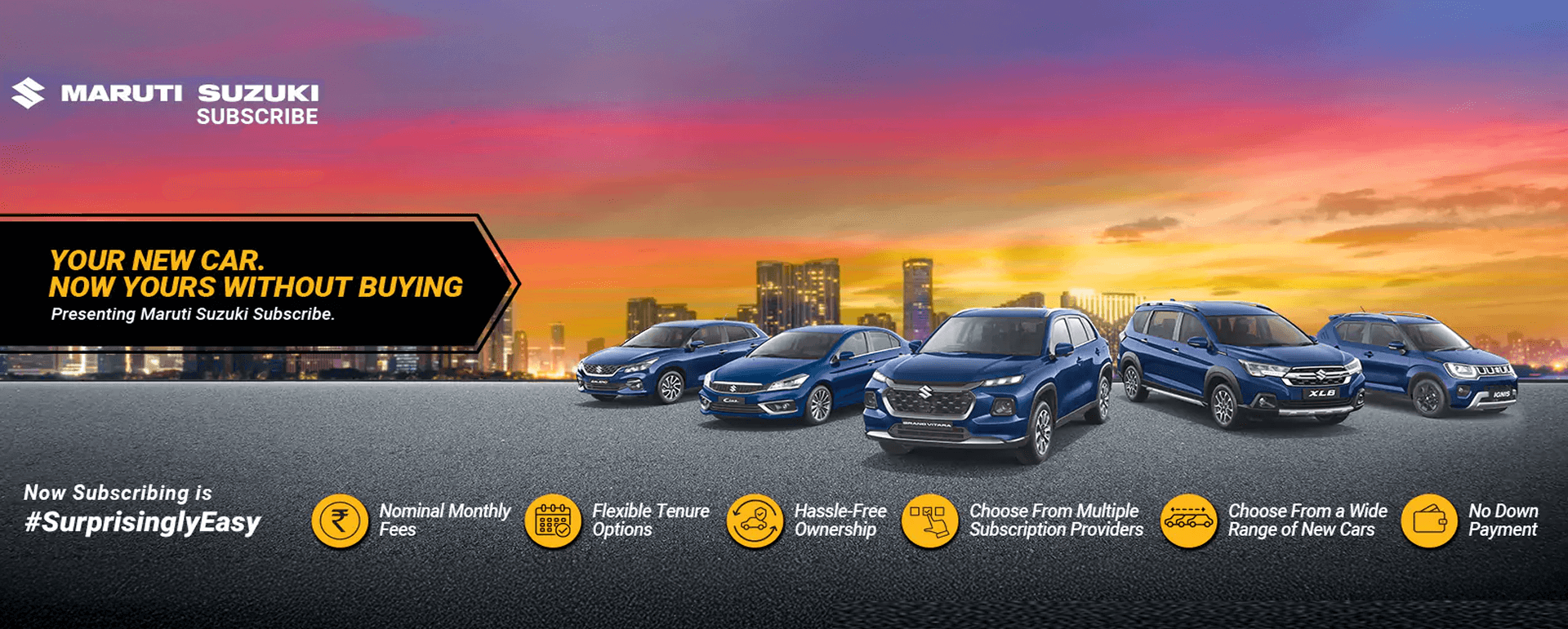 Maruti Suzuki Subscribe enables all customers to enjoy driving their preferred Maruti Suzuki cars without having to deal with all the financial responsibilities that come with owning a car. All you need to do is opt for a monthly subscription plan at a fixed monthly fee, which includes the routine maintenance and insurance costs, and choose a flexible tenure. At in, Saiprabhat Nagar, Khammam, all Hatchback, Sedan, SUV, the MUV models line-up includes Alto K10, Celerio, Dzire, Eeco, Ertiga, Swift, S-Presso, Brezza, Victoris, WagonR. Here, you will enjoy Maruti Suzuki Subscribe benefits such as: